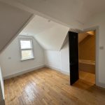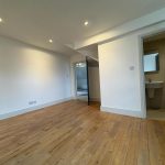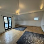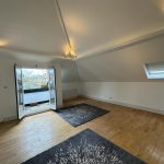 A lovely open space with high ceilings, concealed lighting into the walls, solid wood flooring, radiators and French door s which open onto balconey.