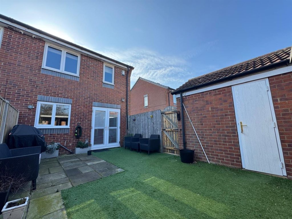 To the front of the property is a driveway providing off street parking and leading to a detached garage. Garden to the rear with patio and artificial turf.
